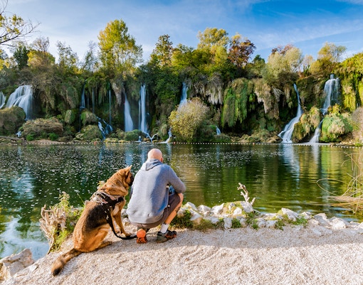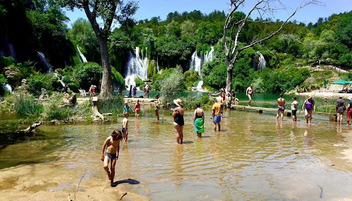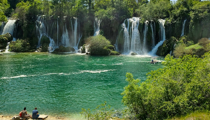 Als je aankomt bij de Kravica waterval, is het eerste wat je zal opvallen de aanblik van water dat over de kalkstenen kliffen tuimelt in een kristalheldere poel eronder. Zoek een comfortabel plekje op de omringende rotsen of grasbanken om het uitzicht in je op te nemen. Het geluid van stromend water, gecombineerd met de weelderige groene kleuren van de flora, creëert een vredige omgeving om te ontspannen.